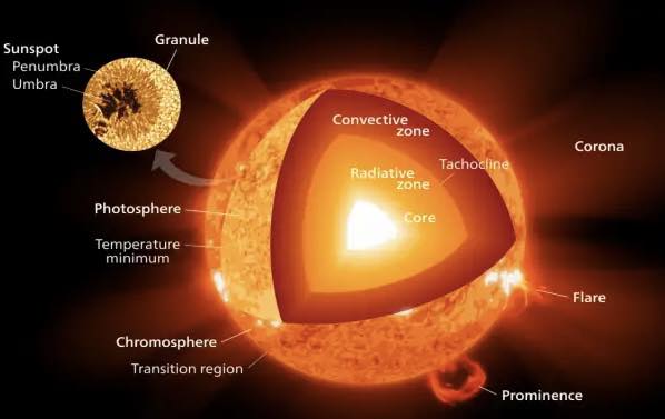 [1] Every second, the sun’s core fuses about 600m tonnes of hydrogen into helium and in the process converts 4m tonnes of matter into energy. This energy, which can take between 10,000 and 170,000 years to escape the core, is the source of the sun’s light and heat
