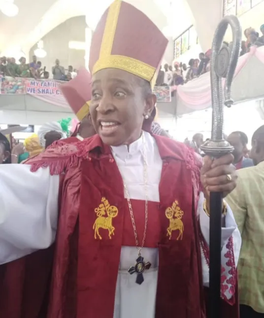 RIGHT Reverend Nkechi Nwosu has been ordained as the first ever female bishop of the Methodist Church Nigeria after being coronated at a special service today conducted by the Archbishop of Kaduna Reverend Joseph Nnonah.