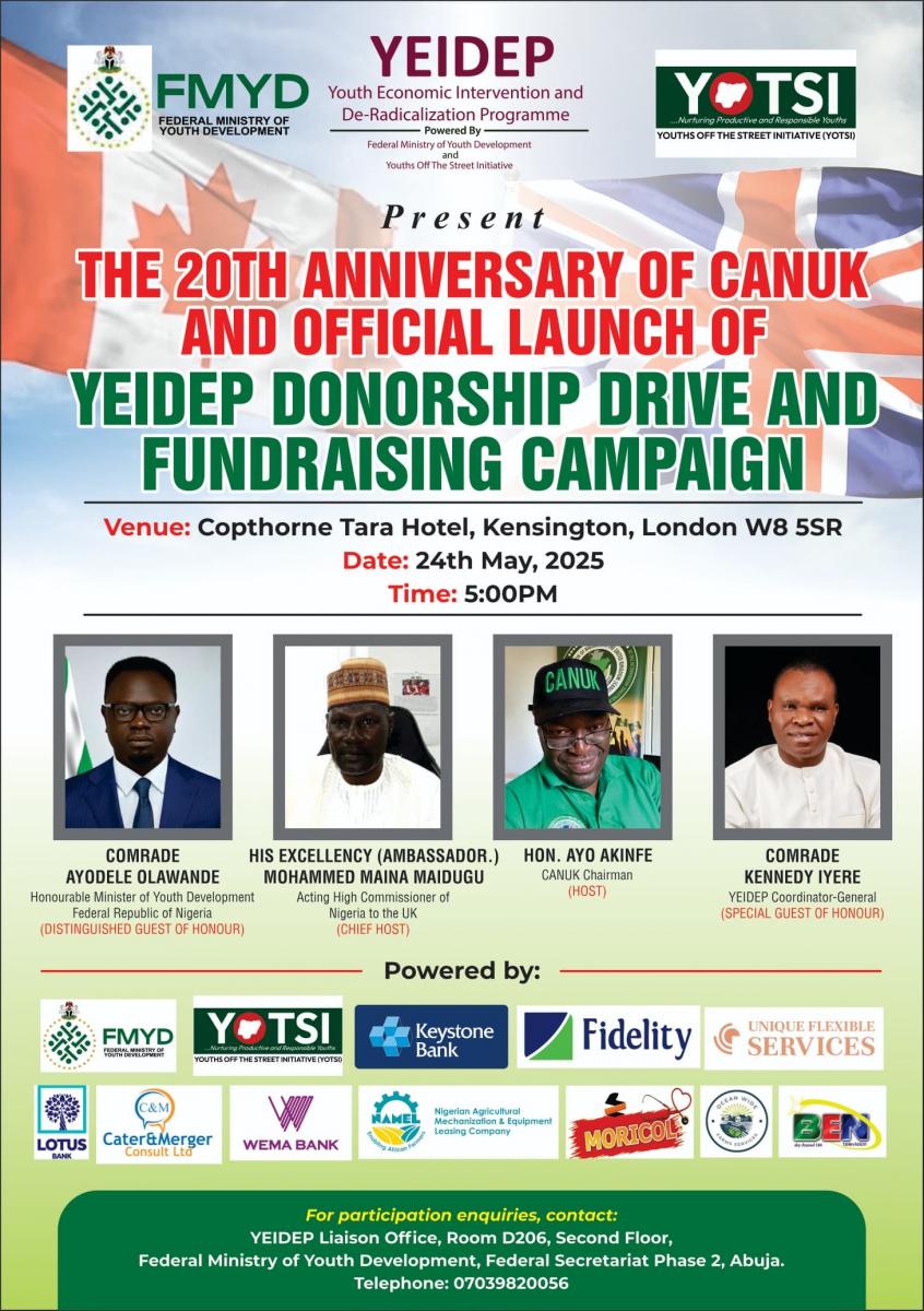 NIGERIA'S minister of youth development Ayodele Olawande has agreed to deliver the keynote address at the Central Association of Nigerians in the UK's (Canuk) 20th anniversary celebrations taking place in London on May 24.