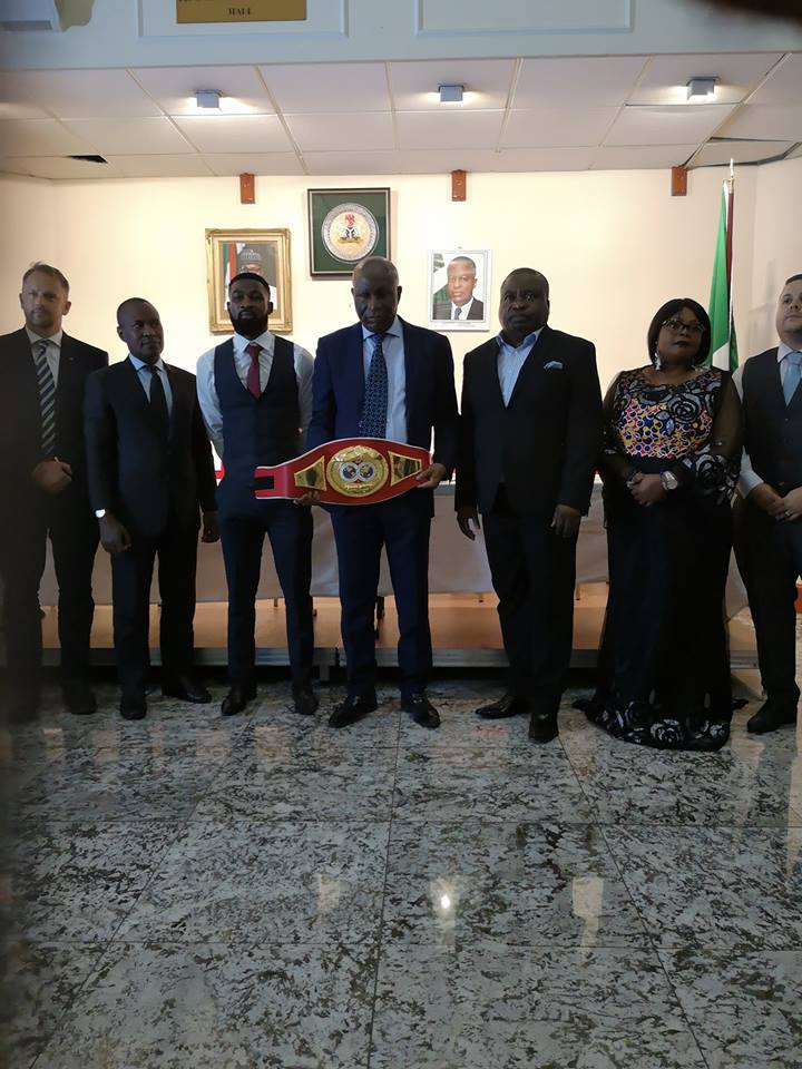 HUNDREDS of Nigerians in the UK turned up at the London high commission yesterday to celebrate with the new International Boxing Federation (IBF) European welterweight champion Larry Ekundayo as he presented his belt to the high commissioner Justice George Oguntade.