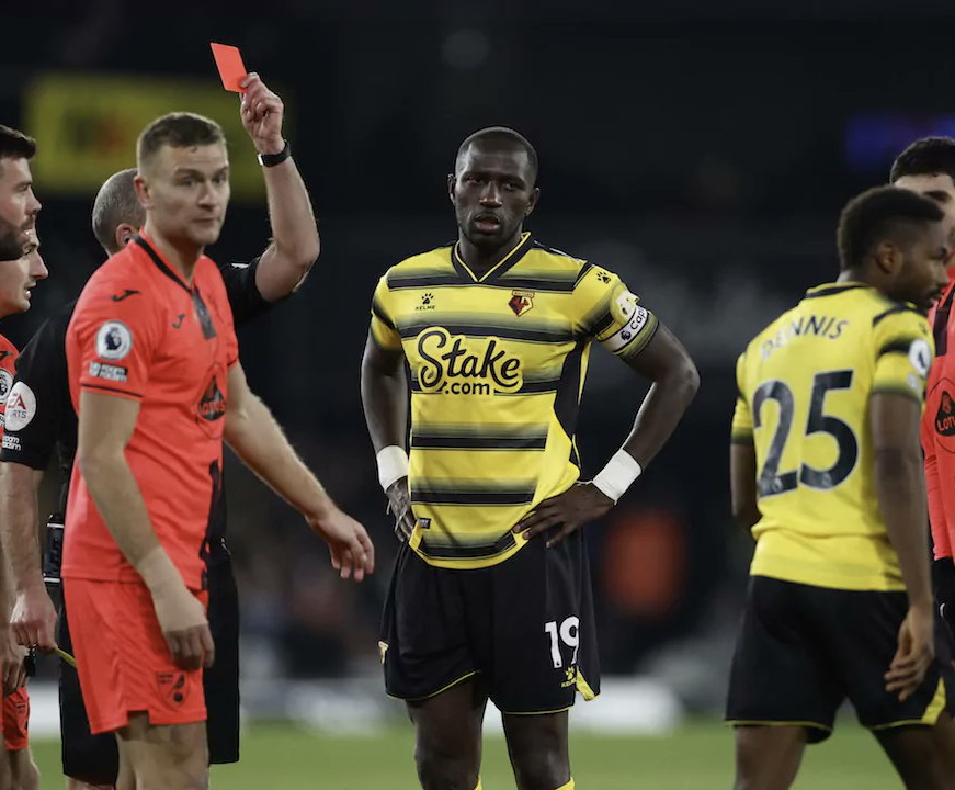 NIGERIA'S Super Eagles got poetic justice yesterday when Nigerian striker Emmanuel Dennis who Watford refused to release for the ongoing African Cup of Nations got sent off in a league match last night meaning he will miss a crucial relegation scrap against Burnley.