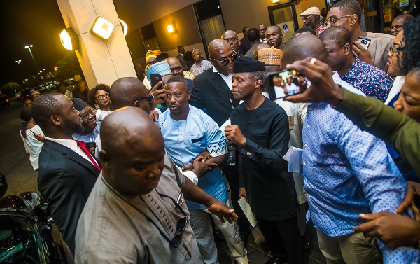 Abuja protesters force Osinbajo to alight from his vehicle and agreed to look into their grievances
