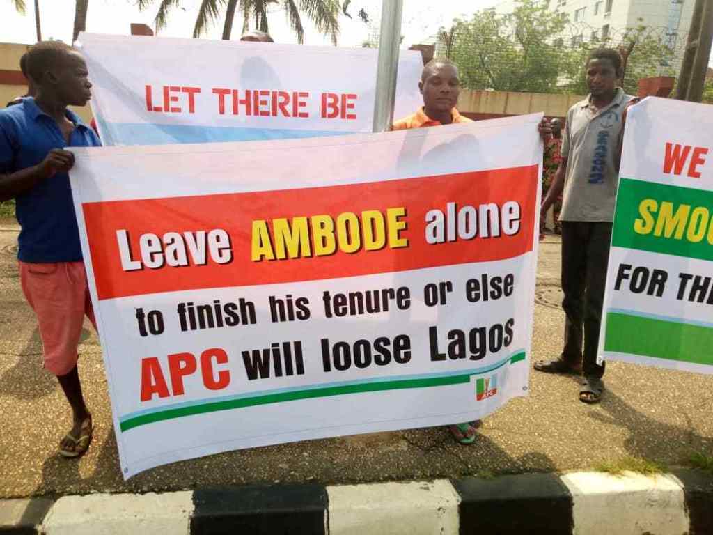 DEMONSTRATORS have stormed the Lagos State House of Assembly to protest planned moves by lawmakers to impeach Governor Akinwunmi Ambode amid claims that he engaged in the unlawful spending of state funds.